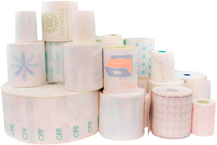 Todos los rollos que fabricamos pueden ir impresos desde una tinta hasta selección de color al frente y reverso del papel, con impresiones sólidas o en pantalla, así como tintas de seguridad.